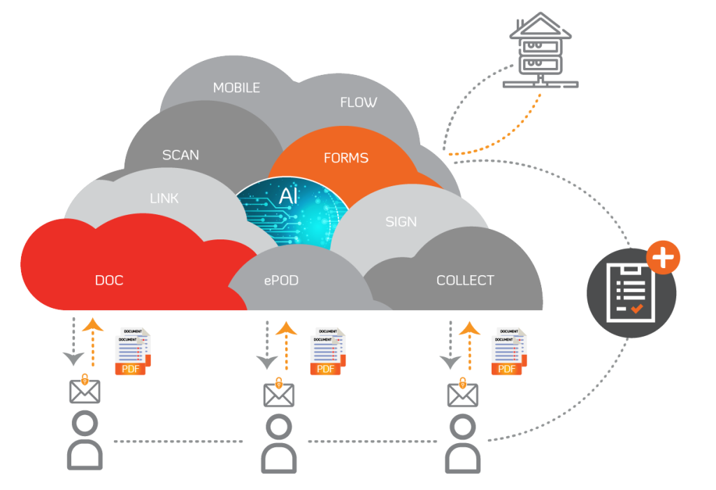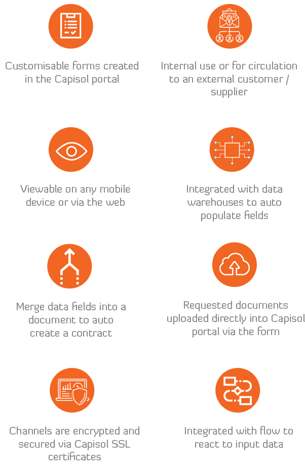 Captured data can be automatically merged into contracts, and integration with SIGN enables seamless digital signature distribution.